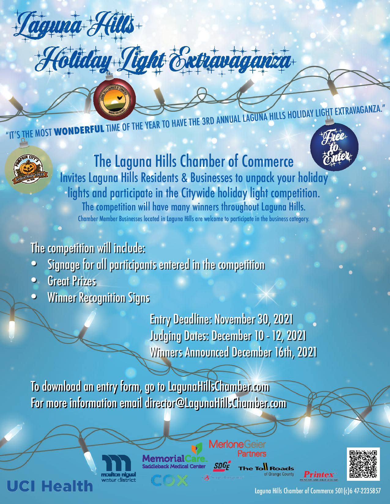 Entry form below or email director@lagunahillschamber.com to be emailed an entry form. Good Luck!