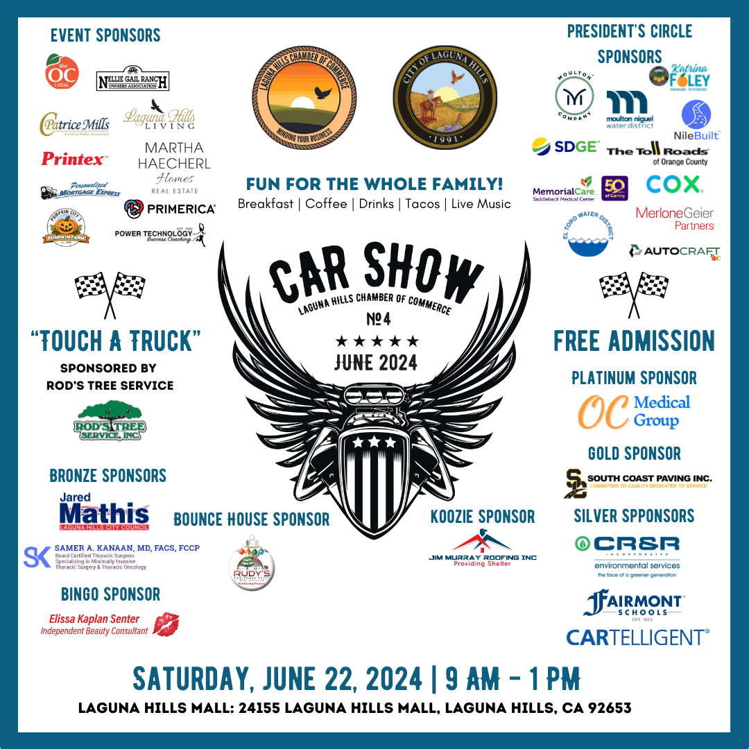 Bring your classic cars, trucks and motorcycles to the Laguna Hills Chamber of Commerce 4th Annual Car Show. This year we are excited to include a Touch A Truck. This community event is fun for the whole family!
