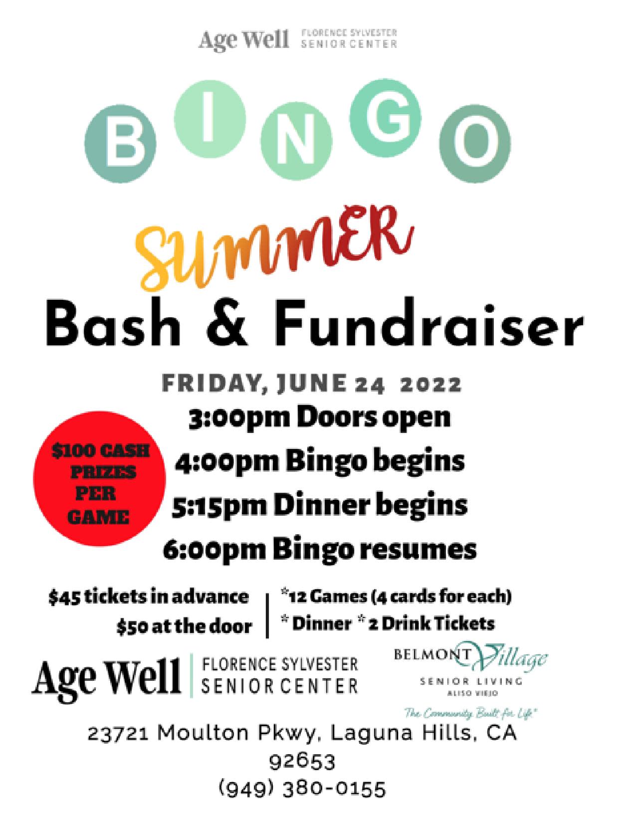 Bingo Back to Search Bingo Friday, June 24, 2022 (3:00 PM - 3:00 PM) (PDT) Description Additional Info Images × Age Well's Florence Sylvester Senior Center 23721 Moulton Pkwy Laguna Hills, CA 92653 United States Friday, June 24, 2022 (3:00 PM - 3:00 PM) (PDT) Registered Guests × Share × Print Email Add to Calendar Facebook LinkedIn X Pinterest Powered By GrowthZone