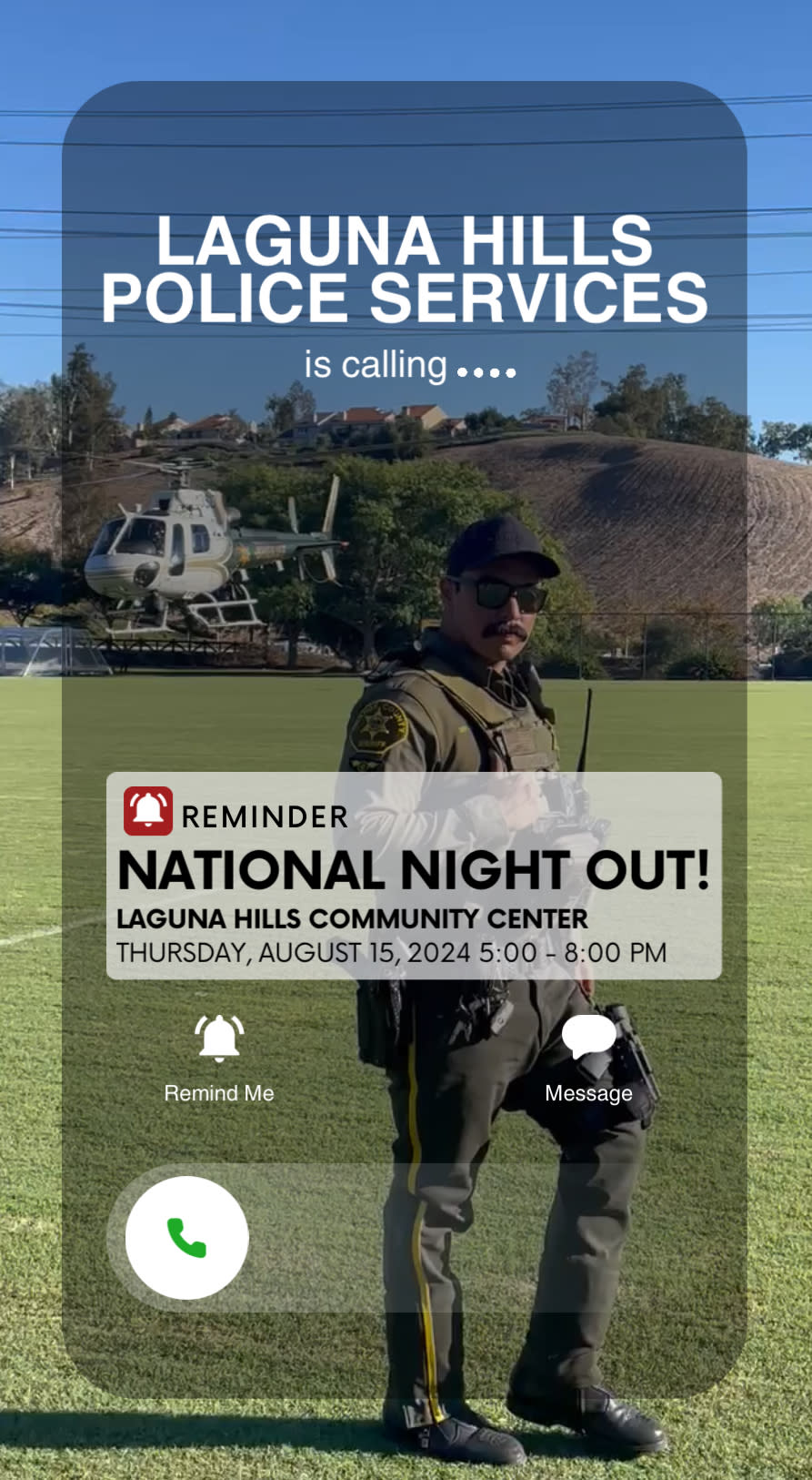 Join us as well support OCSD Laguna Hills Police Services with their National Night Out!