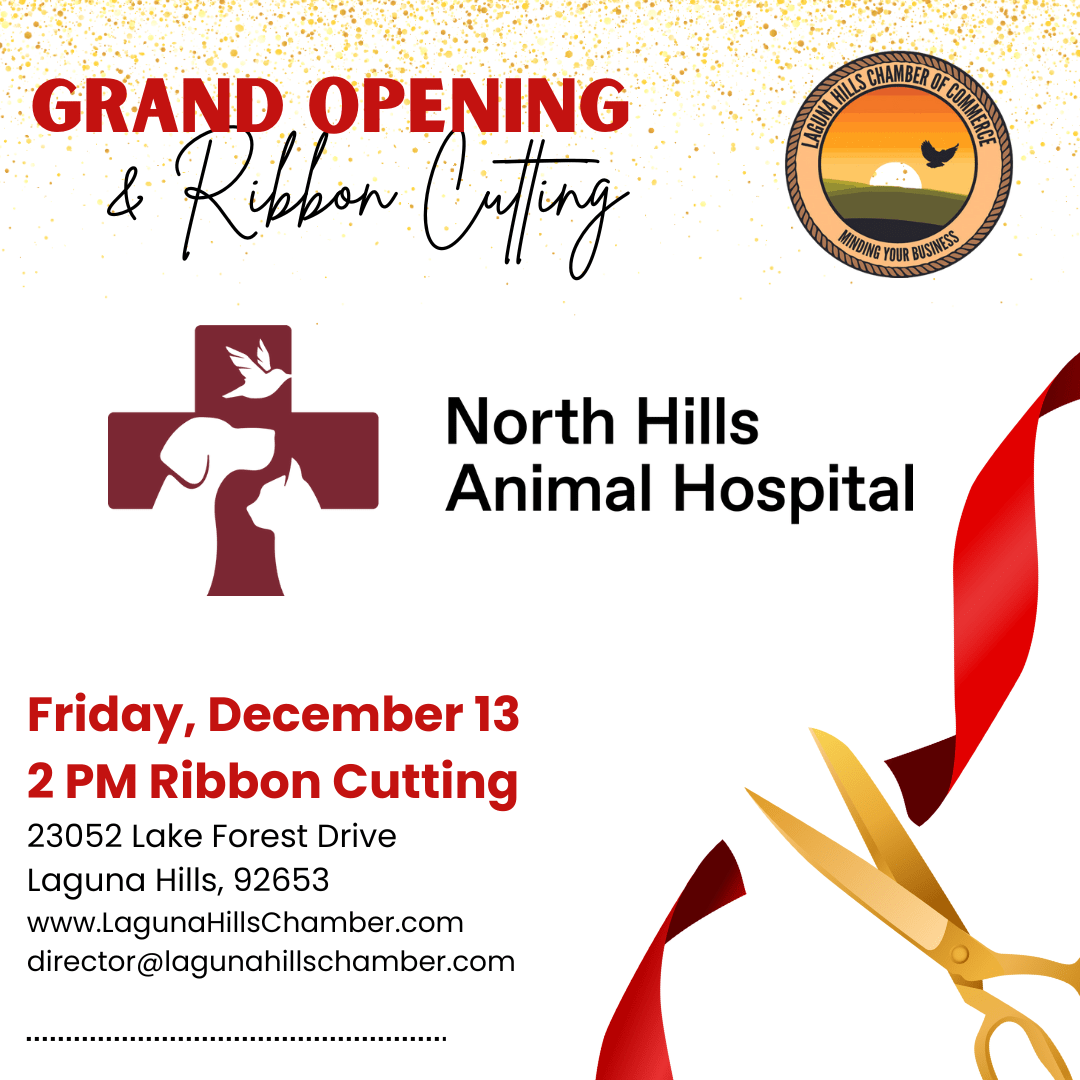 Join us for the Ribbon Cutting Ceremony of North Hills Animal Hospital! Celebrate the grand opening of their state-of-the-art facility, meet the dedicated team, and enjoy light refreshments as we welcome our newest member to our community.