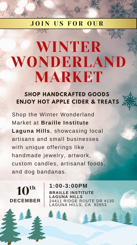 December 10th 1-3 PM Braille Institute Laguna Hills 24411 Ridge Route Dr #130 Laguna Hills, CA 92653